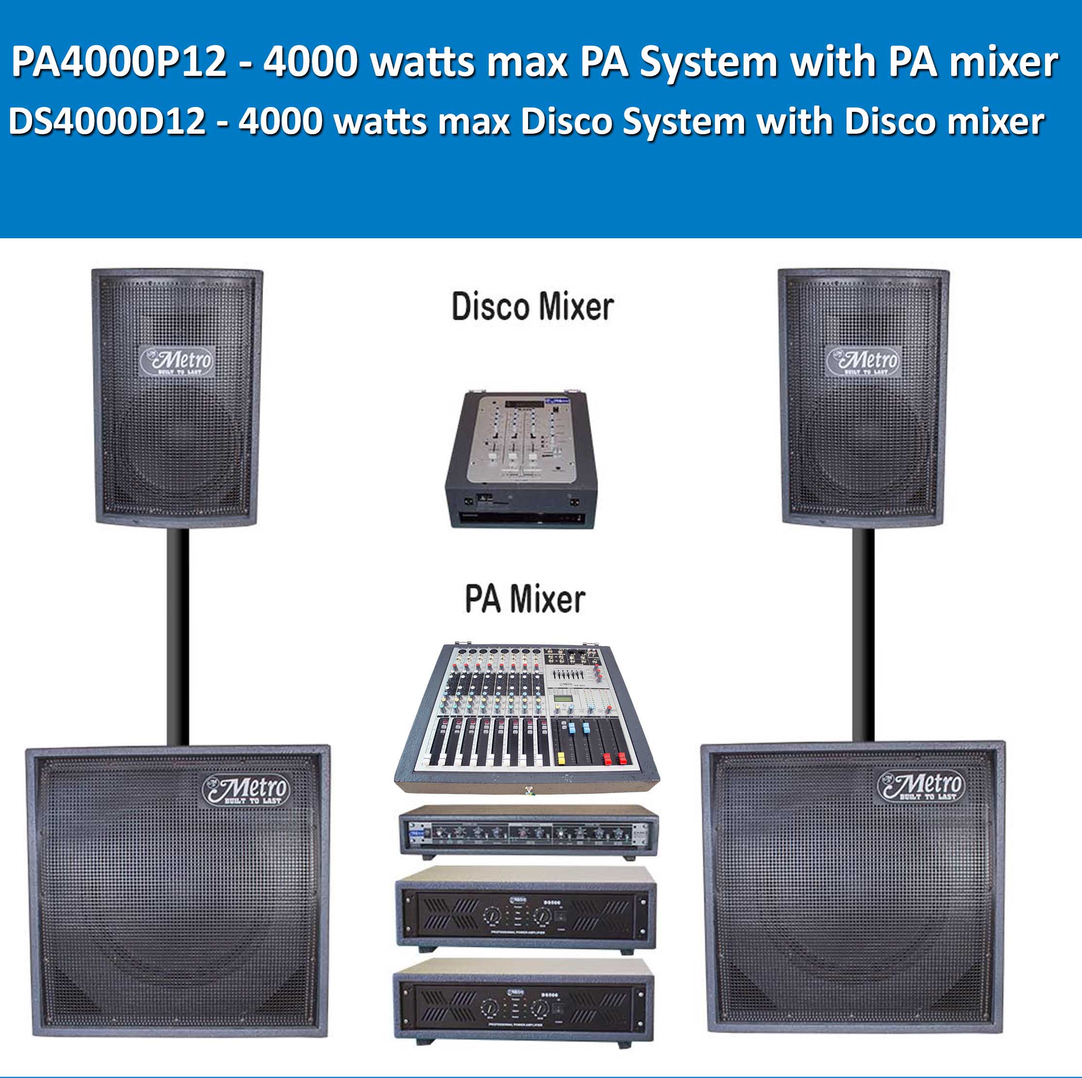 1 x 12 channel Metro PA. Mixer plus USB or Metro Disco Console